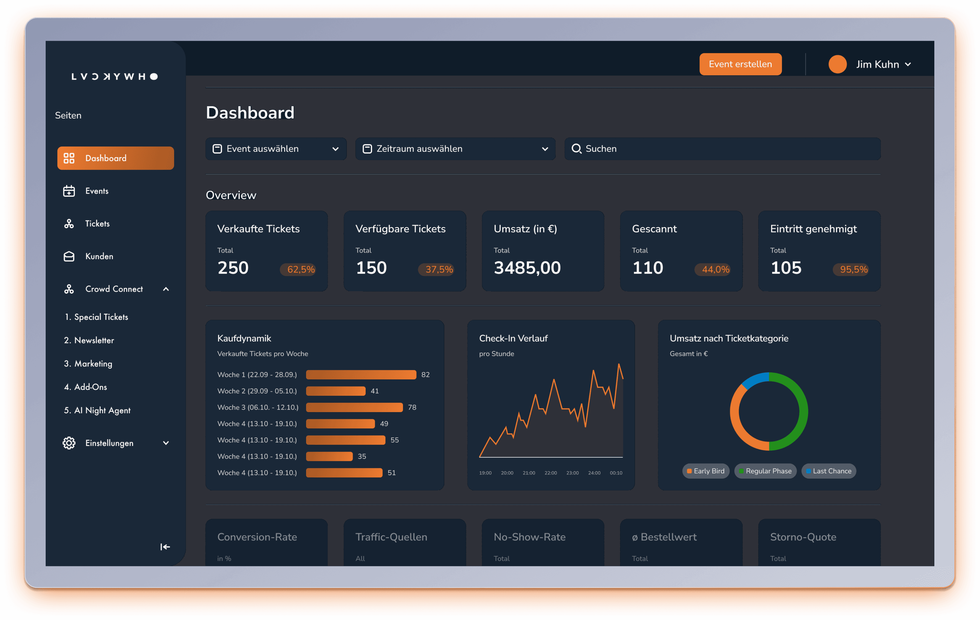 Dein Ticketing sollte dein Wachstum treiben, nicht ausbremsen. Nutze unser Echtzeit-Dashboard, behalte alle Metriken im Blick und triff datenbasierte Entscheidungen für dein nächstes Sold-Out-Event.